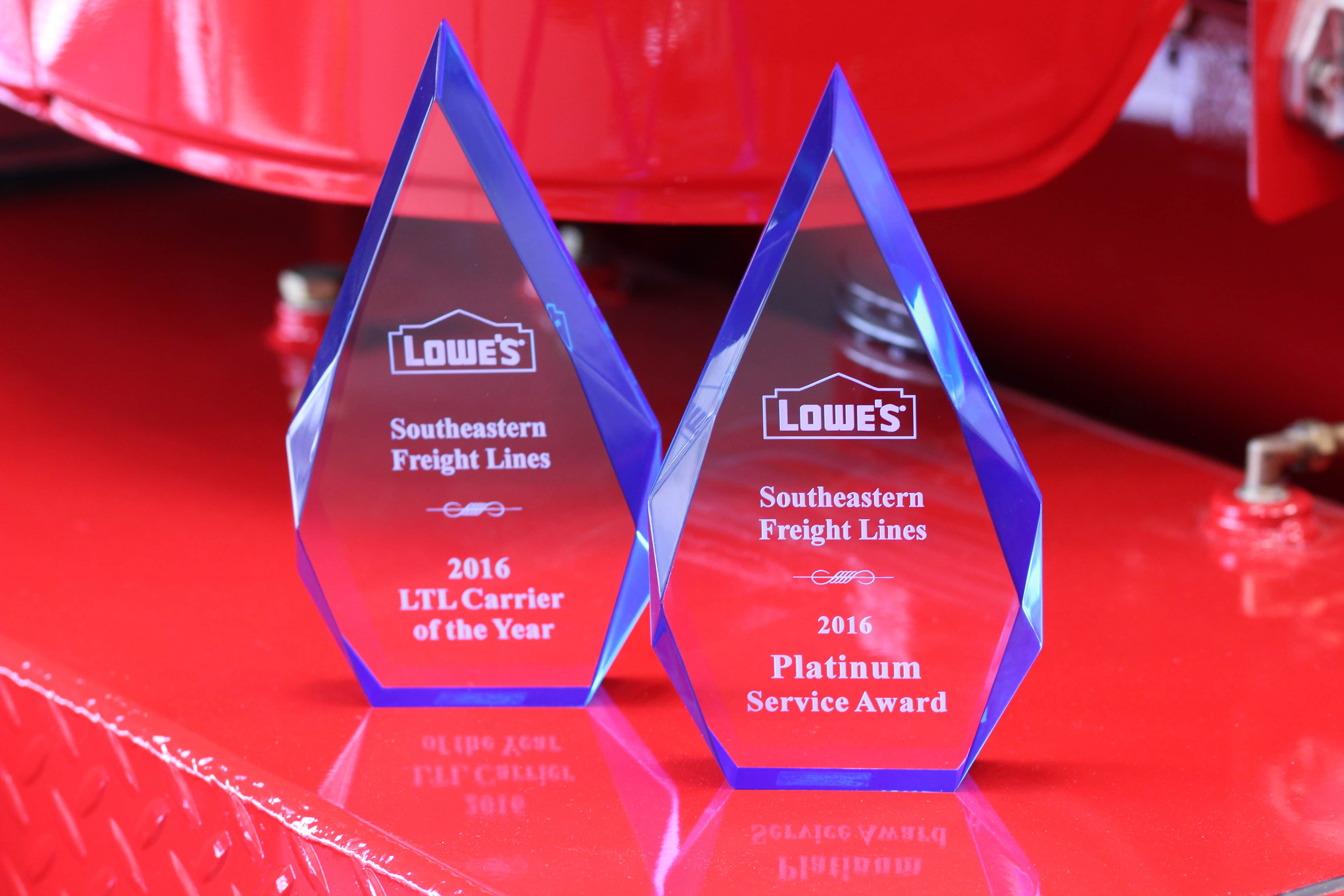 Southeastern Freight Lines, the leading provider of regional less-than-truckload (LTL) transportation services, has been named Lowe's LTL Carrier of the Year for 2016. In addition, Southeastern also received Lowe's Platinum Service Award for 2016, which is the highest award designation possible for the home improvement retailer.