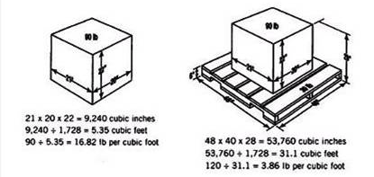In determining the density of a shipment, multiply the length, width and height in inches of your shipment and then divide they product by 1,728 to obtain the cubic feet of the shipment. Dividing the weight by the number of cubic feet produces the shipment's pounds per cubic foot.